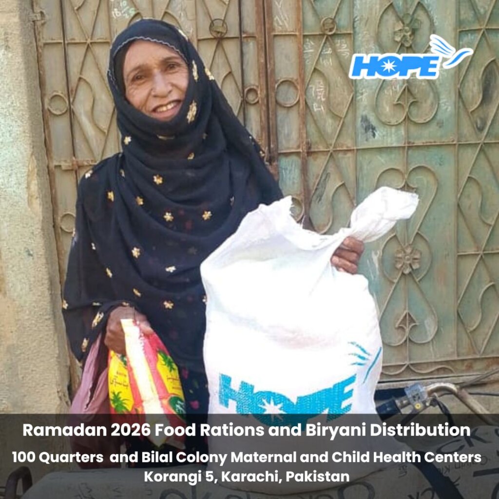 Our Food Rations and Biryani efforts have amped up in time for Eid! On March 16, 200 families received Food Rations and Biryani to take home. Distribution took place at 100 Quarters and Bilal Colony Maternal and Child Health Centers situated in Korangi, Karachi, Pakistan. Korangi is a low-income inner city region in Karachi where HOPE has established Healthcare, Education, and Vocational Training facilities to uplift the underserved population.
