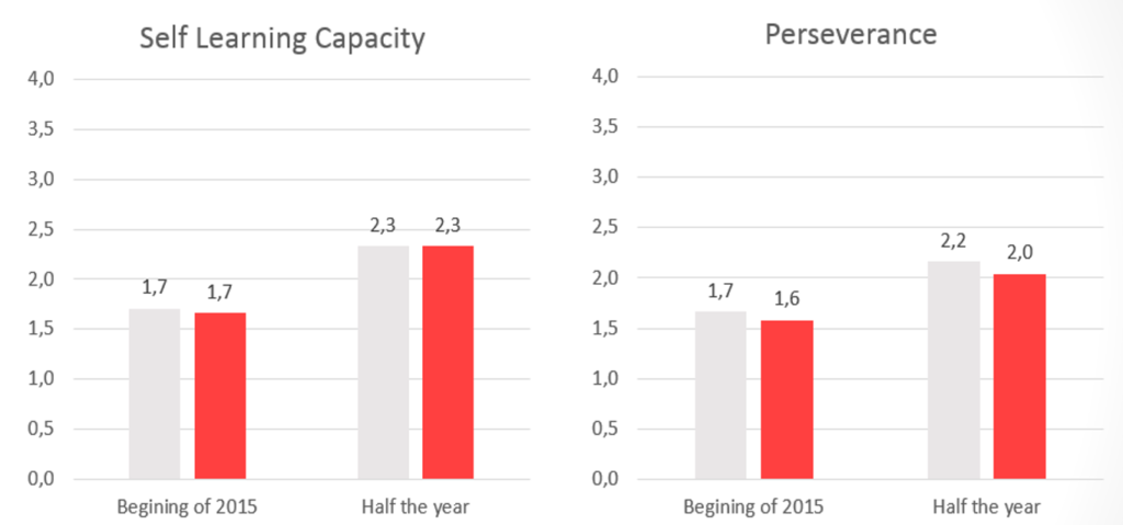 The five professionals from Enseña Peru working in the of La Libertad, (where Julca district is) began a challenging and emotional school year. The Performing diagnostic tests reveal the educational reality in which their new students were. In two schools where we have impact, 80% of students began the year with disapproving notes and / or academic gap, it means not on the level where they should be for their age and school year. That's why the first two months we focus on working with children in a hard way, identifying how they get to learn and emphasizing self-esteem getting amazing results. Since the end of two months the 0 level was reduced by nearly 60 % as you can see in the charts below both globally and in communication and mathematics.