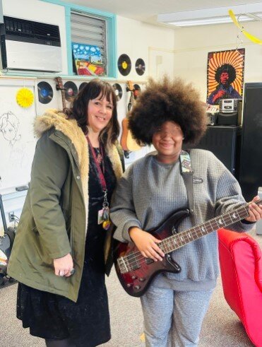 In addition, when one of the students on her case load shows musical passion and dedication, and has no instrument to play, we have gone to bat to get them a special guitar, bass, or violin.