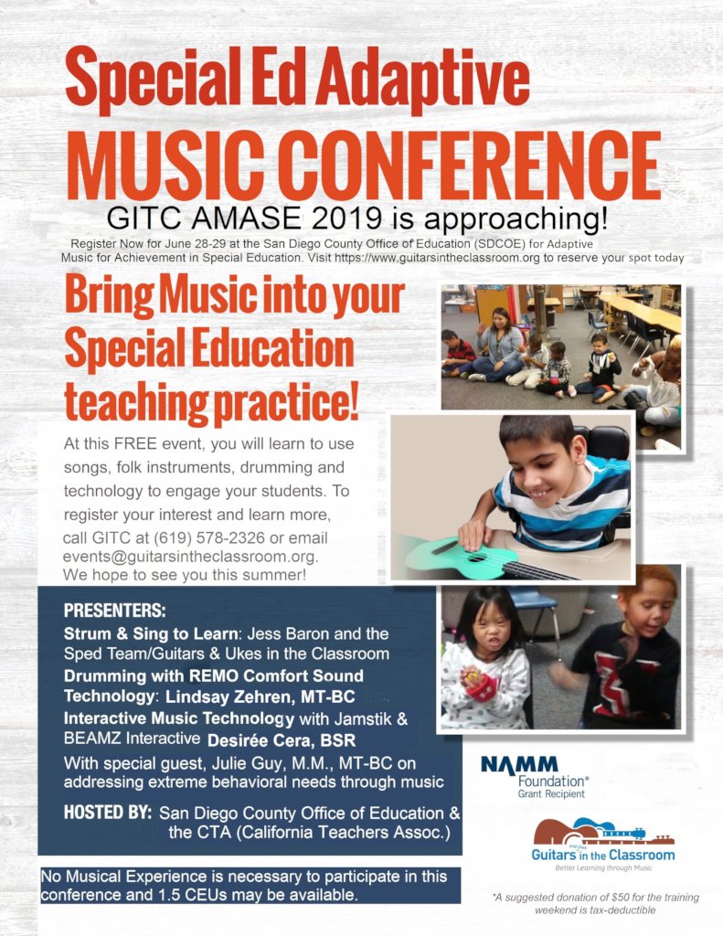 Our charity us immensely grateful to the dedicated leaders from Visual and Performing Arts and Special Education divisions of the San Diego County Office of Education, San Diego Unified School District and Chula Vista Elementary School District. We owe the progress that was made this past school year and summer to the advocacy and support of these great individuals and their unanimous receptivity to our unusual approach to making music accessible to ALL students.