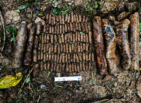 Towards the end of 2025, our team responded to the discovery of unexploded ordnance (UXO) near one of our kindergartens in Quang Tri Province. The ordnance was discovered after heavy rains triggered a landslide along the area’s major road, uncovering ordnance that had been buried. A local resident quickly reported the discovery through the PeaceTrees and Quang Tri Mine Action Center hotline, allowing our explosive ordnance disposal team to respond within minutes. The team safely identified and removed 115 explosive items, ranging from small projectiles to rockets and incendiary bombs, before transporting them for secure demolition. While UXO discoveries at and around kindergarten sites are uncommon, this incident highlights the continued risks communities in Central Vietnam face and the important connection between safe land and access to education. Thanks to the swift response, the area was secured so children and families can continue to travel to school safely.