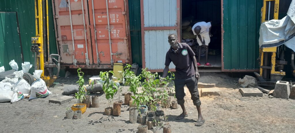 On the same day that these refugees arrived, our agriculture team was busy distributing seeds, seedlings, and watering cans. They were in a nearby village called Guer. A blue table outside of a large World Food Programmed tent was our workstation. At Guer we signed up many new farmers. We are close to reaching 1,000 farming households annually with this program. Seeds, seedlings, and tools. All to fight famine.