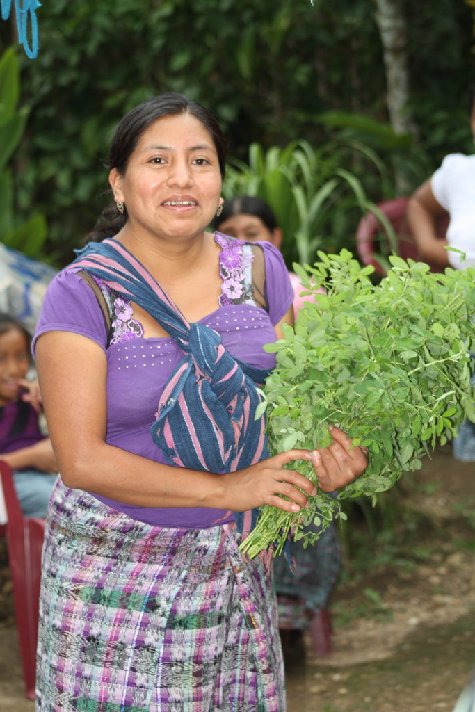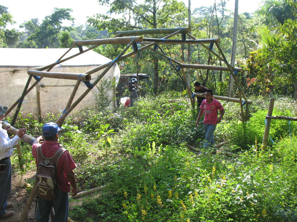 This year however, even though there were some serious tropical storms, THE FAMILIES WERE READY! Seeds for a Future staff helped them build toldos -- protective structures -- over their gardens. Many sizes and types of bamboo flourish throught the Chocolá region, so excellent construction material was readily available. Pilones de Antigua, one of the largest seedling producers in Central America, generously donated large quantities of a special type of plastic from their greenhouses.