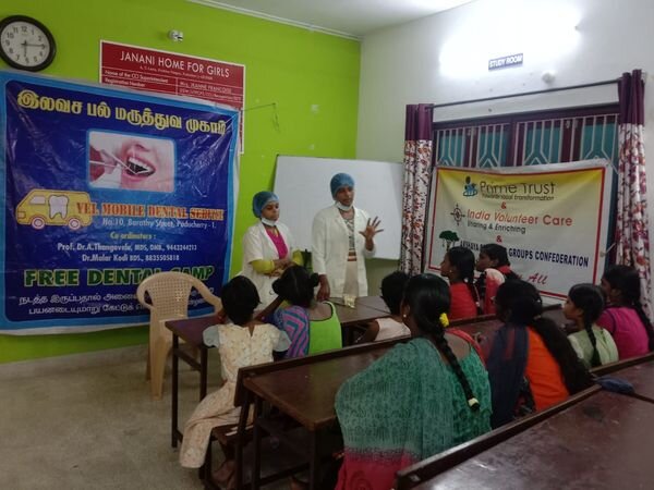 Prime Trust in hands with Vel dental Team organized a dental health session for the children in Janani Home on 07.04.2023. The Dental doctors gave information about the importance of dental health and the significance of maintaining it.