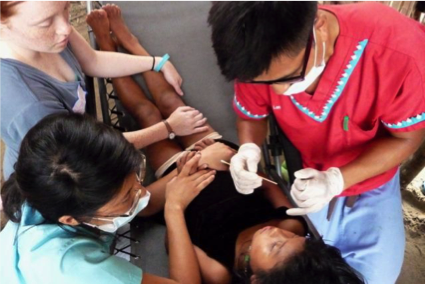 Though we were busy with the high volume of patients, we still took the time to hand out toothbrushes, toothpaste, and speak with the children about oral hygiene. My group created a poster that taught the techniques of brushing and flossing, which was both informative and colorful. This was one of my favorite activities while working in these communities because education is essential to changing behavior and effecting long-term health. The people in these communities were receptive to new information, the children most of all. After being taught about brushing their teeth they seemed to share what they had learned with their family and friends. The children would line up and ask for “cepillos” and “colgata”, which I quickly learned are their words for toothbrushes and toothpaste. The children seemed genuinely curious about the dental station, and on several occasions I saw their intent faces peering in at us, and I felt as fascinated by them as they were about our work.