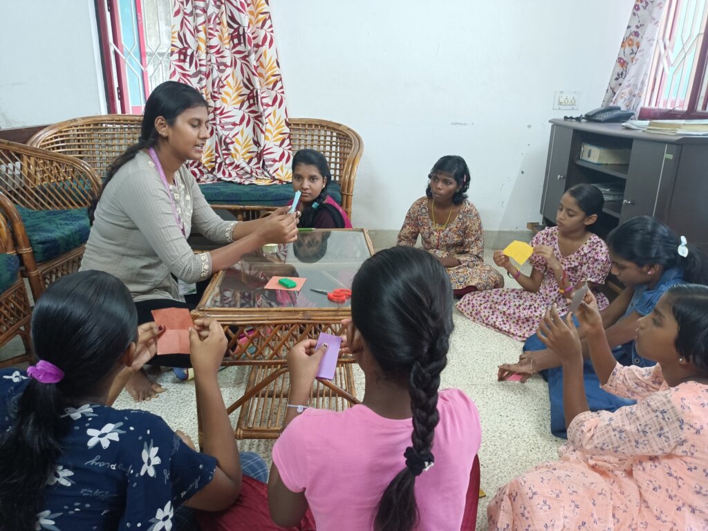 On 29.05.2023 the MSW intern from the Rajagiri College of Social sciences, Kerela conducted a session about basic First-aid for the students of evening schools in Muthialpet and Rainbow Nagar and for the girls in Janani Home. The session included primary and secondary first-aid, the DRABC method, choking and burning injuries, and how to deal with emergencies.