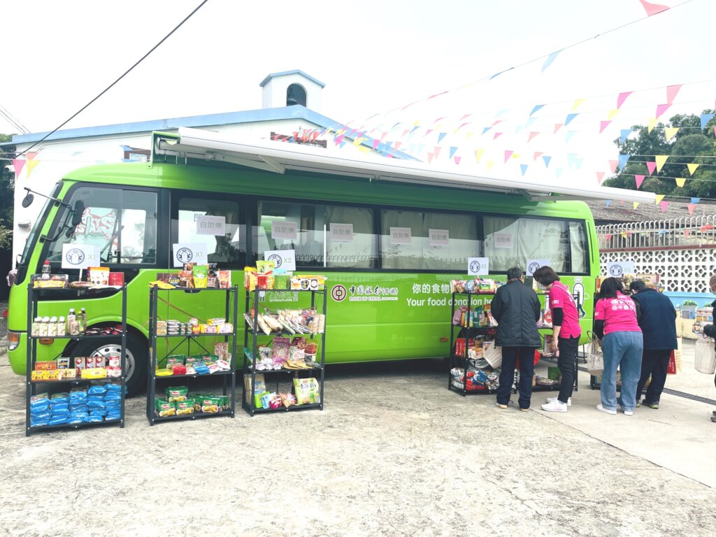 For the preparation of recent “Meals on Wheels x Self-serve Station” service at Kwu Tong in Sheung Shui, the Food Angel team has filled the truck with loads of dry food collected through food rescue efforts, which included a wide variety of food items such as noodle packs, canned food, Tea Leaves, snacks etc. Upon arrival at the Kwu Tong site, our team quickly set up portable shelves for food display and eagerly await our elderly friends to arrive to experience the new service mode.