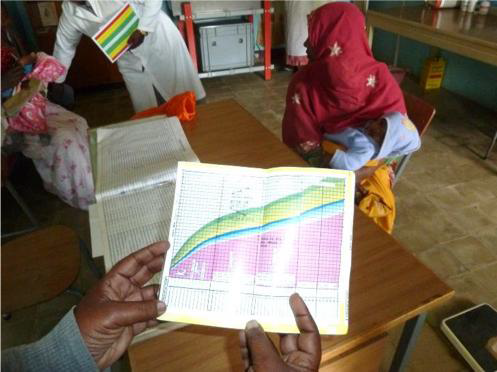 Right after childbirth we give the mothers a card with the list of all vaccinations which are compulsory for the child, and a colorful chart to monitor the growth rate, to understand quickly the physical condition of the child and the possible intervention for those who are in nutritional deficit.