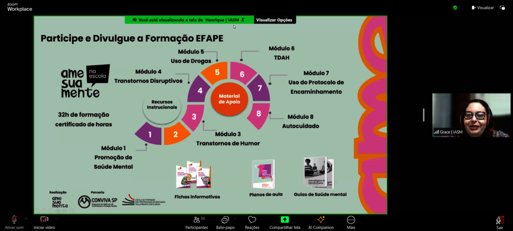 We are now preparing to launch the Ame Sua Mente na Escola mental health training cycle for 2025. Along with our ongoing partnership with SEDUC-SP, in the Paraná state, we continue our collaboration with Fundação Itaú Social and the Inclusive Education Board of the Paraná State Department of Education. The knowledge dissemination project for public school educators is now in the planning phase for its second stage, during which the content studied by a group of 16 trainers will be shared across schools.