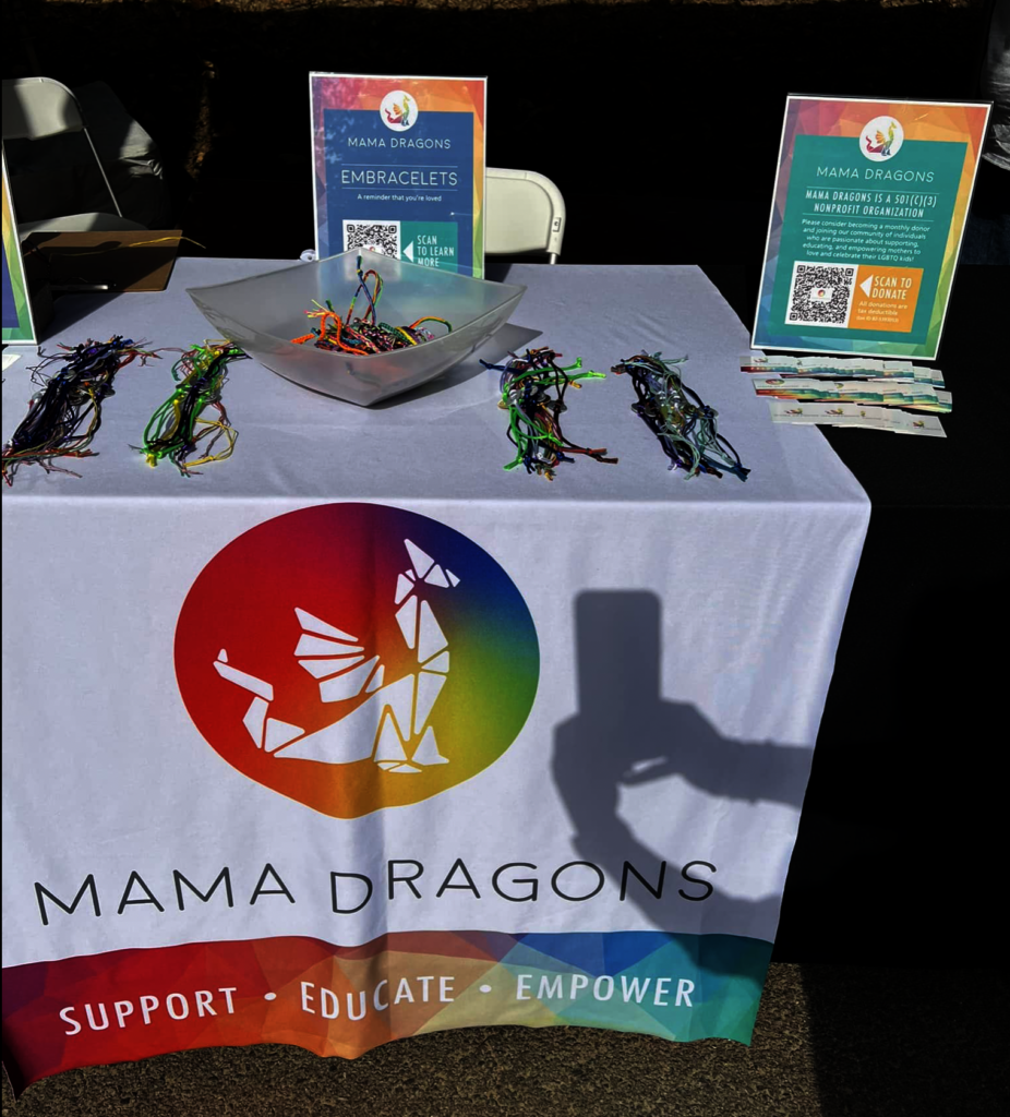 Mama Dragons is going back to Pride celebrations this year! Queer people who come from non-affirming homes need to be reminded that they are LOVED, and that there is hope for a better future. Mama Dragons is known for our fierce advocacy for our LGBTQ+ children (of all ages) to have loving, affirming homes. We frequently are asked for HUGS while we are out and we are almost always willing to give those as well as the physical reminder in the form of one of our Embracelets. Embracelets remind people that someone put time, energy, and care into making sure they know that they are seen, they are worthy, and they are loved.