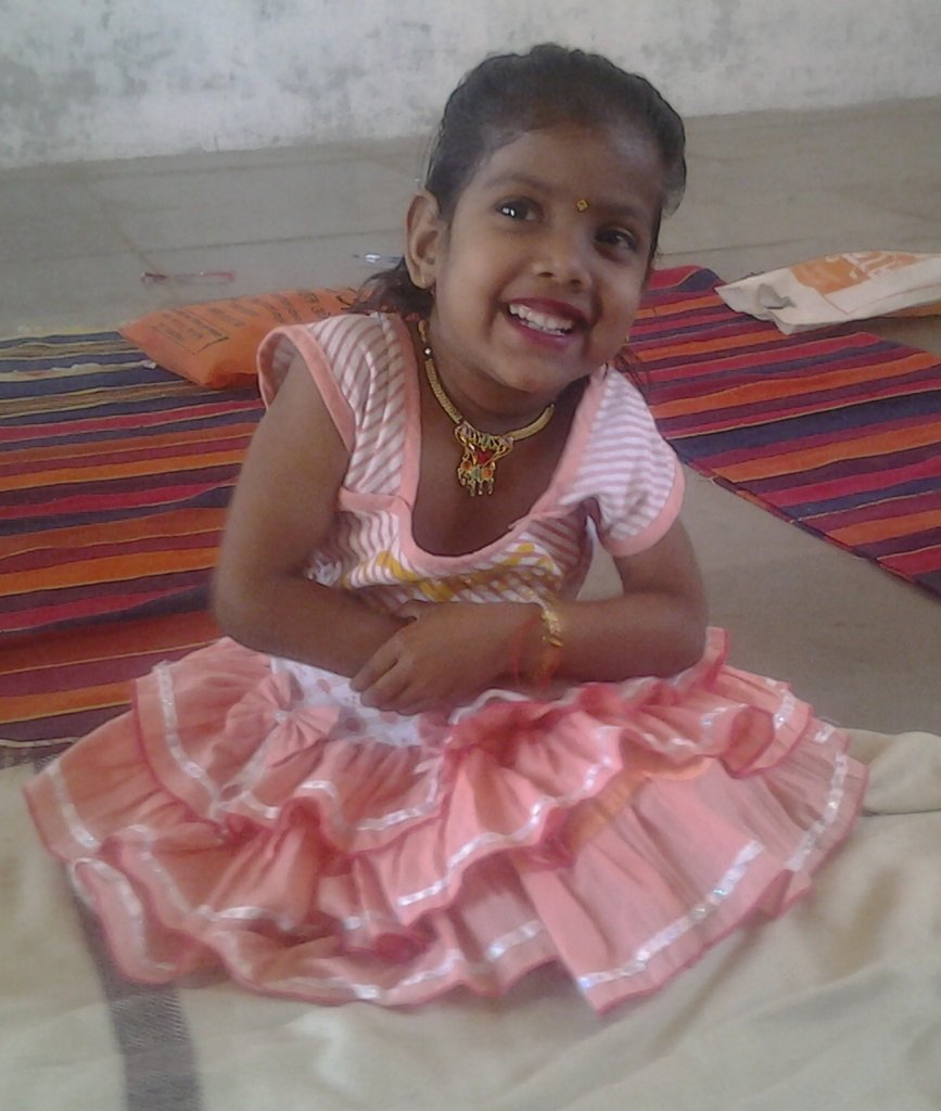 Gouri is 5. She lives with her 2 brothers, who are 7 and 4, her parents. She is physically handicapped, not able to use one leg, which means she finds a few things more difficult than other children. Her father and mother work in a farm. The NISD créche worker visited Gouri's home a few times, whenever she was in the village, and saw each time that she was alone with her brothers in the day, while her parents worked.