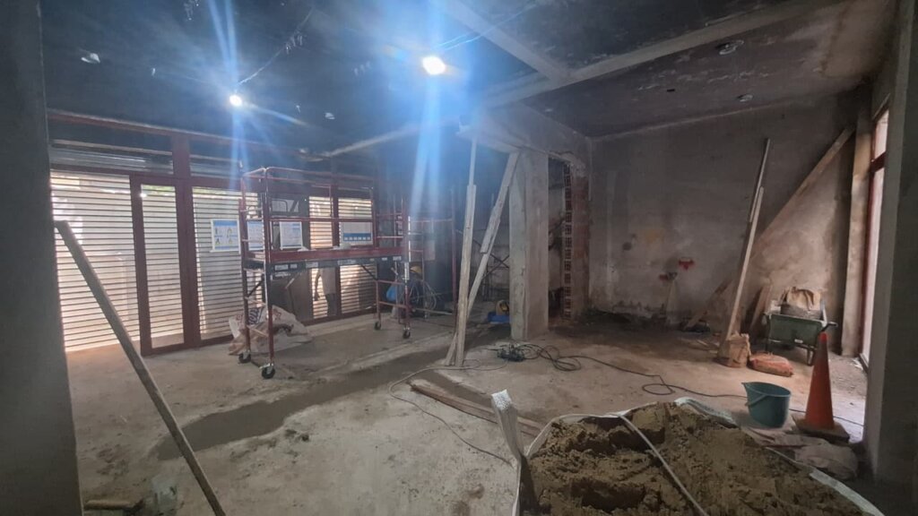 Over the past months, the sanitary installations have been finalized and electrical works have begun. We are making strong progress on the wall plastering, and all carpentry with glass has been installed, including shutters and storefront windows. The remaining steps include finishing the painting, completing the exposed electrical installation, and finalizing the front façade with the access bar.