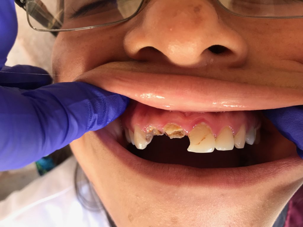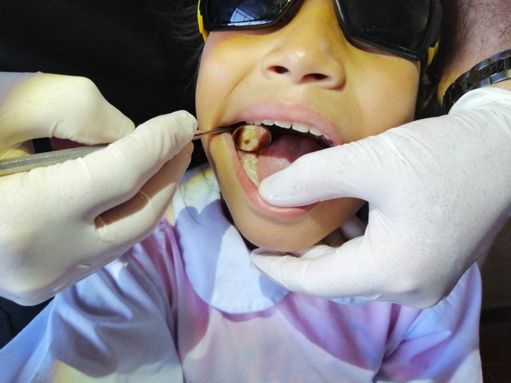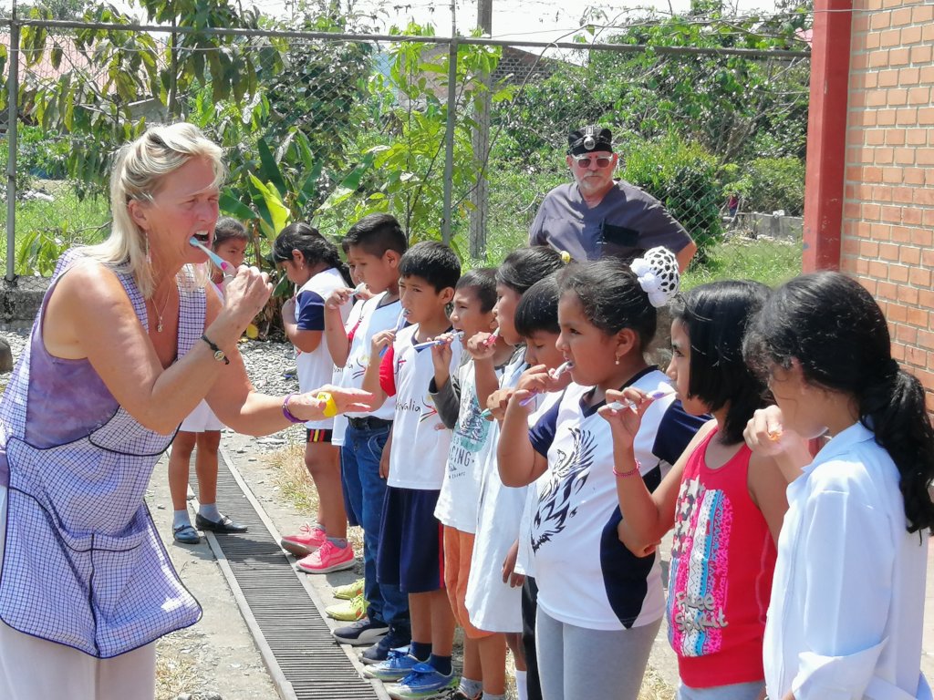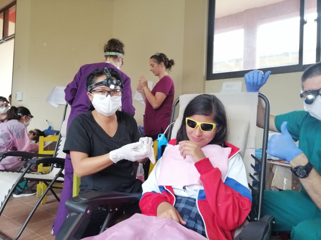 The conjunction of our work focuses on the application of Silver Diamine Flouride, a product that allows us to eliminate active tooth decay, education in prevention is also carried out, nutrition and tooth brushing, Dental extractions and the beginning of a new stage on the program: Dental extractions and fillings with Glass ionomer Cement and resins that complete the aesthetic part of treatments aimed at permanent teeth.