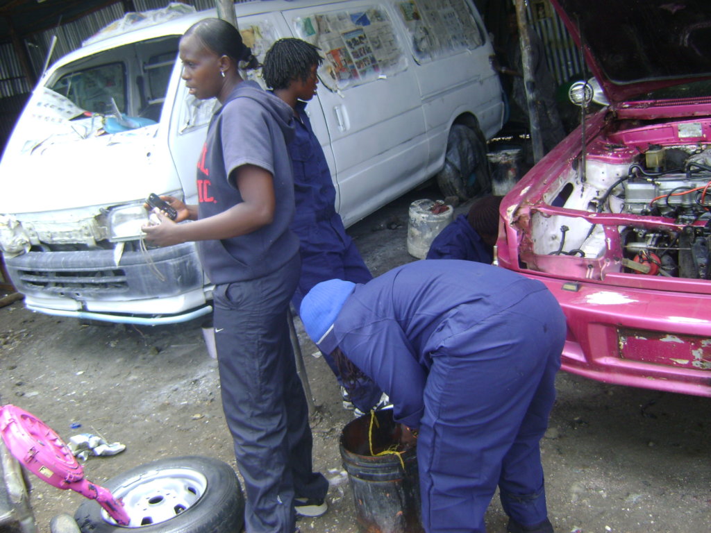 When we thought of ways of girls and young women to earn an income that would make them stand out, we thought of car mechnics. Also in Kenya this is a business that is traditionally run by men. Other professions and businesses like hair dressors or beauty salons for example, are very common in Nairobi and widely spread. We thought girls and young women that are educated in car mechanics would have a great opportunity for jobs.