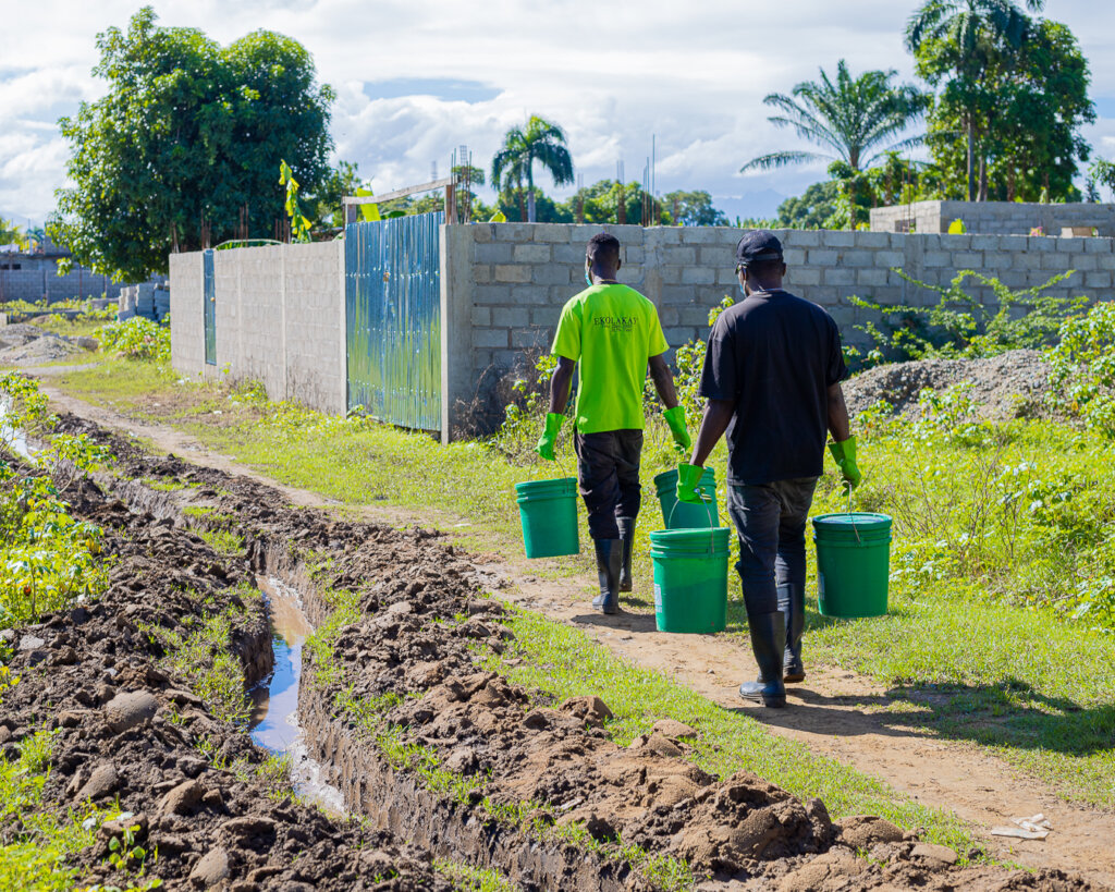 On Sunday, April 13, we relaunched the expansion of our EkoLakay household sanitation service in the little-known town of Caracol–a community that’s home to a major industrial park and surrounded by sweeping rice fields and small fishing communities. The overwhelmingly positive response during Phase 1 made Caracol a natural choice for launching Phase 2. Guided by insights from our Phase 1 baseline surveys and meetings between our Research and Operations teams and local leaders, we prioritized expanding EkoLakay beginning with the most vulnerable households in high-risk flood zones.