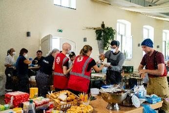 Catering center: About 10,000 meals and 10,000 lunch boxes were distributed daily via the catering center in Grafschaft. 40 distribution points were supplied directly