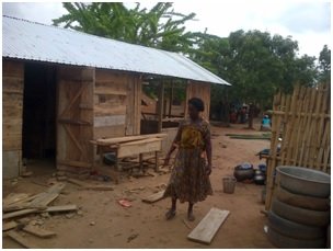 In January 2013, the Executive Director and Board President of Self-Help International visited Ghana. Their quest to experience improvements in the lives of SHI micro credit program beneficiaries took them to a remote village, Kyereyaase. Rebecca, 39 and a mother of four, told them how she was able to build a structure, a joint kitchen and a shop with savings from her business. Her kitchen used to be a dilapidated bamboo structure with no roof.