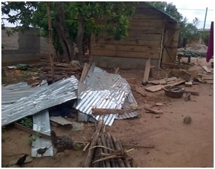 On March 16, 2013 disaster struck. There was a storm and several structures in Kyereyaase were destroyed. Rebecca’s new structure was gone. The roof flew off and hit an adjacent building and another portion of the building was broken.