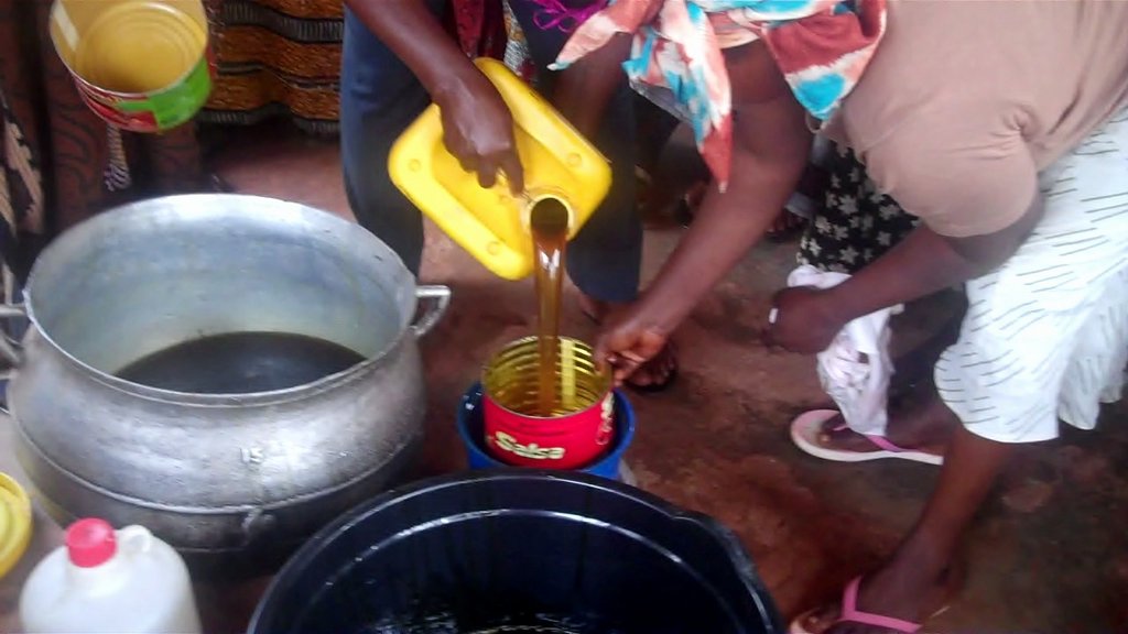 In review, screw presses (purchased through your gifts) squeeze more oil from palm fruits increasing the amount of oil extracted. In addition, presses reduce time the required to process oil. Increased oil, harvest time for palm oil, and bumper crops can cause gluts in the market and low prices for palm oil. Having the alternative to make and sell laundry soap is proving to be a real asset by adding value to their oil and family incomes.