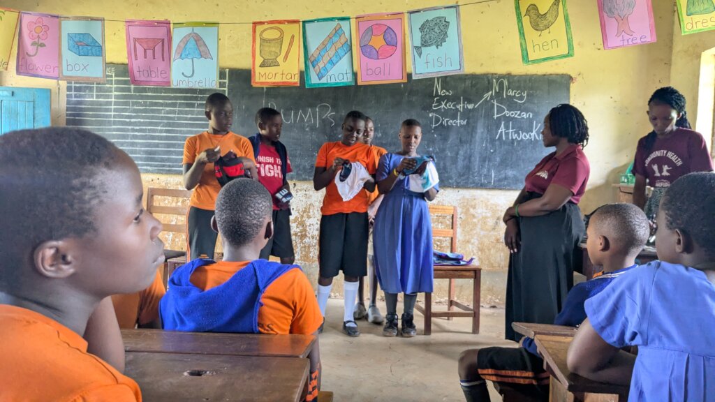 Since 2015, a key initiative has been teaching Club members how to make reusable menstrual pads (RUMPs), an essential skill, as many adolescent girls struggle to access reliable menstrual hygiene products, which can hinder their ability to stay in school. This training is provided to both boys and girls, alongside education on puberty and reproductive health, ensuring that all students are equipped with the knowledge they need for a healthier future.