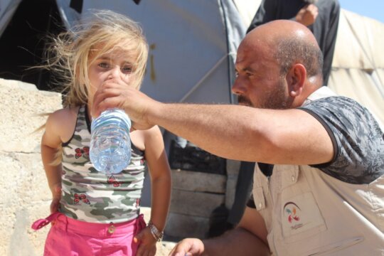 In one of the informal camps in the countryside of Azaz, northern Syria, dozens of families suffer from scarce resources and the difficulty of accessing clean water—especially during the summer season, with unprecedented high temperatures that make life even harsher and the need for water more urgent.