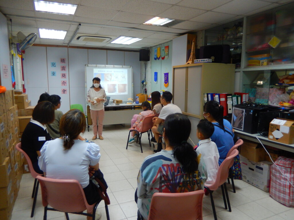 Through this service, we aim to help the parents give the best care and due treatments to their cleft lip & palate children, so that they can rehabilitate smoothly without facial difference. The volunteer parents have cared for their own cleft lip & palate children on a daily basis, thus over the years they have become the true experts in raising the affected children. Their experience is very useful and invaluable for new parents that can make new parents feel at ease during the long journey of cleft treatment over twenty years.