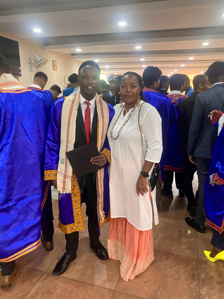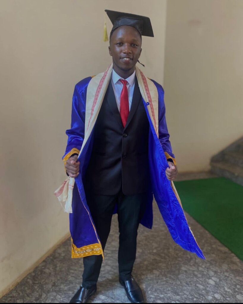 John was born and brought up by his parent who have physical disabilities. They live in Nyandarua County in rehabilitation centre. He sat for his K.C.P.E and managed to get 309 marks and got a place in Kangui Boys School. He could have done much better than this were it not for the challenges of his parents. He had a lot of responsibilities during school holidays, taking care of his parents and siblings. He successfully managed to complete his O level and scored a mean grade of B plain year 2017. He joined a Technical University in Kenya in August 2018 to pursue Bachelor in Electrical $ mechanical Engineering. In 2019 we got for him a full scholarship in KIIT University in India . He is currently in second year. He graduated with on 18th June 2023 with a degree in mechanical engineering.