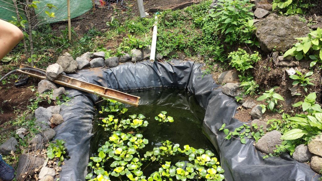 In 2014-2015, ATC worked with small solar water oxygenators to create healthy living environments for a collective or rural women tilapia fish farmers. Gaspar volunteered to help us in this project and to learn about raising tilapia and snails for family nutrition. Now its his turn, Gaspar came to ATC for help installing a solar water oxygenator for his young family's tilapia tank!