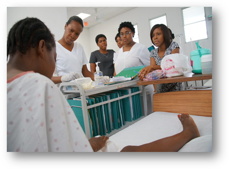 Above: MIREBALAIS, HAITI - APRIL 2, 2014: Clinical Nurse Administrator Naomie Marcelin conducts rounds at University Hospital in Mirebalais, Haiti, with nurses Jeddidiah Claude Pierre, Carline Gerome, Marie Synndie Aime, Heraldine Aneas, and Abdonie Laguerre. (Photo by Rebecca E. Rollins / Partners In Health)