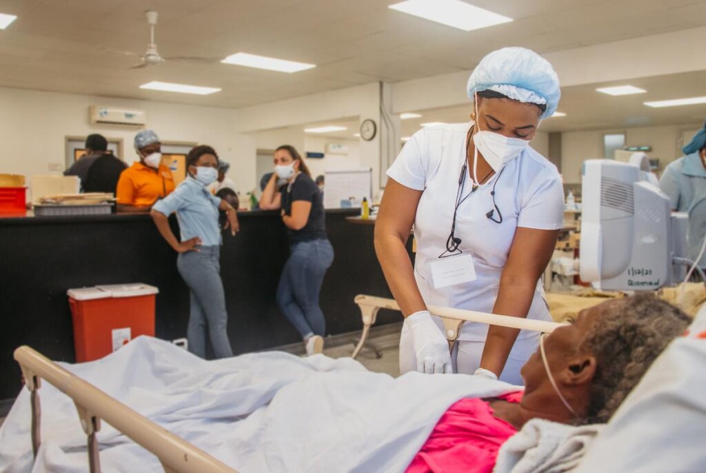Zanmi Lasante (ZL) staff taking care of patients in the Emergency. Photo by Mélissa J. / PIH