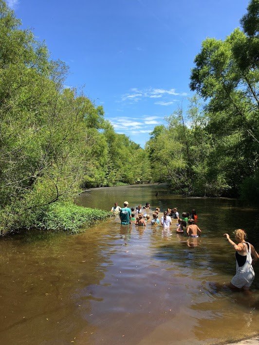 Even when we aren’t actively learning about the creek, it’s clear that our Earthkeepers feel connected to it. They love making “fishing rods” out of sticks, grass, and other odds and ends. Our student, Madeleine, has made beautiful nature art fishing scenes, too.