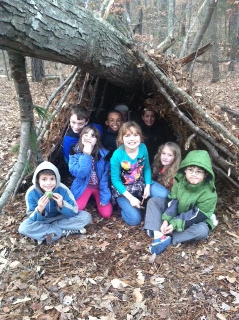 We built community by sharing our findings and working in different groups. This also happened when we played games (a big favorite) so students could practice skills we taught. One of the most loved was a game called, Keeper of the Fire. A student was chosen to be the Keeper who sat blindfolded in the center of a circle. The others circled around at about 10 feet away and were chosen by the teachers to approach the Keeper and try to take one of the sticks that surrounded him or her, and sneak it back to the perimeter of the circle undetected. If the Keeper heard someone, he or she pointed to where the sound seemed to be coming from. If the Keeper pointed at a student in the process of acquiring a stick, the person went back to the beginning and returned the stick if in possession. Stalking, sensing, and hearing skills were practiced during this game. Another game we played was, "Owls and Crows”, which involved hiding, stalking, and catching "prey" and emphasized nocturnal and diurnal animals. One student, Mycala, exclaimed, "This is the best game ever!" Another student was most upset when his mom came to pick him up before we had finished. He began crying and begging to stay at school!