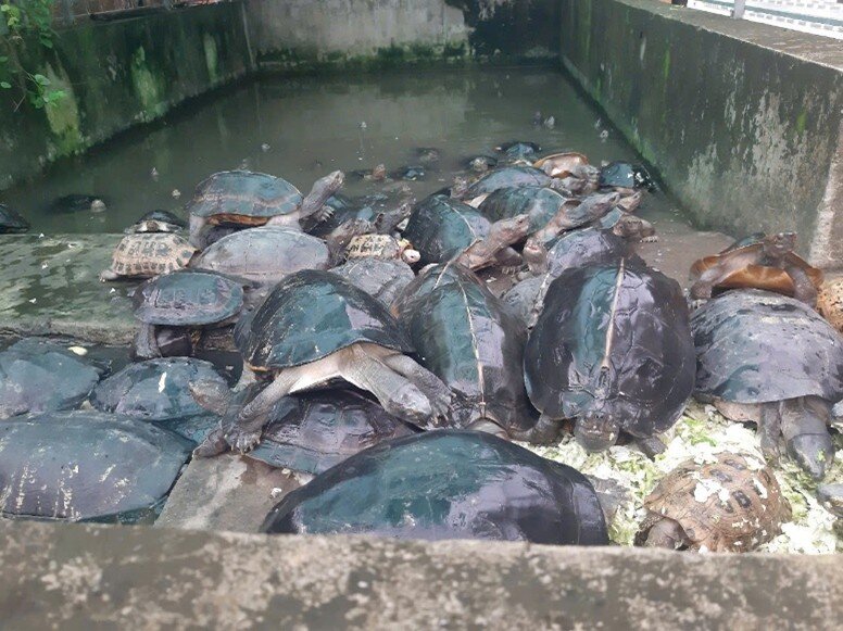 - On June 17, 2025, Can Tho City FPD responded to a public report via the ENV Wildlife Crime Hotline and confiscated a total of 61 turtles, including 46 giant Asian pond turtles (Heosemys grandis), five yellow-headed temple turtles (Heosemys annandalii), five elongated tortoises (Indotestudo elongata), and five red-eared sliders (Trachemys scripta elegans) from a local pagoda. All the native turtles were transferred to Cat Tien National Park while the red-eared sliders, an invasive species, were destroyed (Case ref. 32086/ENV).