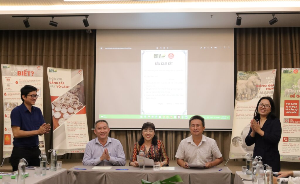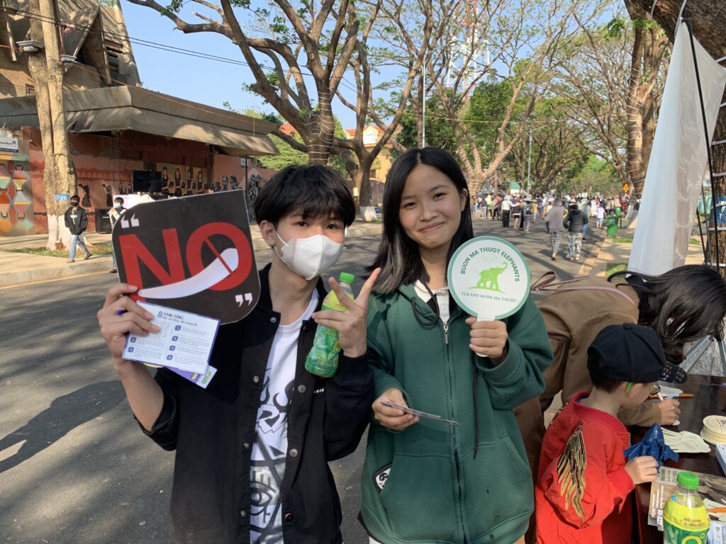 Our team travelled to Buon Ma Thuot city in Dak Lak to spread the word on the need to safeguard elephants on the African continent from the illegal ivory trade. This included site visits to tourism establishments, where they signed a commitment to be an ‘Elephant-friendly Business’. ENV also held a ‘Tourism Workshop’ to launch this initiative prior to site visits the following day. Dak Lak is the elephant ivory hotspot of Vietnam, making province the focus of demand reduction efforts. In March 2023, some of our volunteers attended the Coffee Festival in Buon Ma Thuot, where they hosted a booth to raise awareness on the issue. Here, they collected 1,064 pledges from the public not to use or buy ivory products and to protect wildlife.