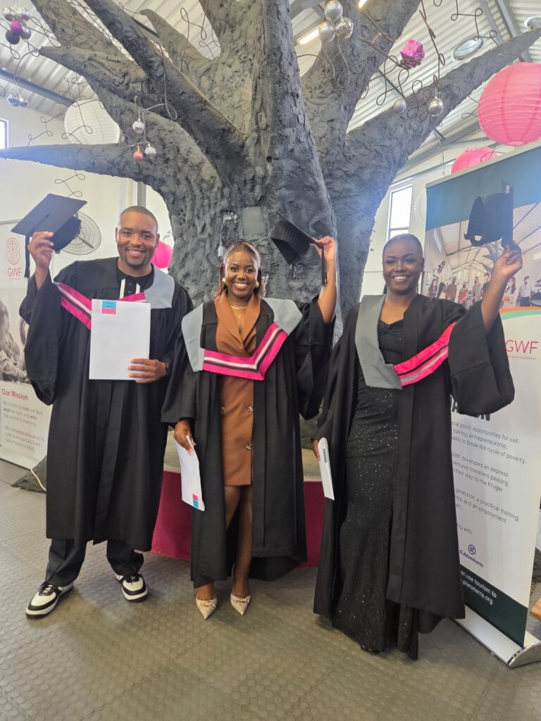 Graduation season! Students from Good Work Foundation’s Career Academies came together at the Hazyview Campus to mark the end of an important chapter. We are especially proud to celebrate three Care for Wild team members who have successfully graduated from the GWF Facilitator Academy.
