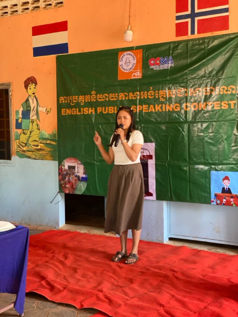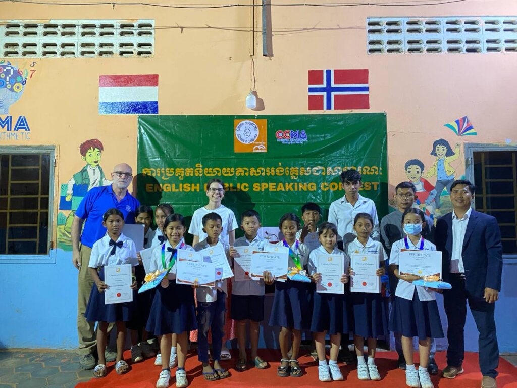 Our student, Dorin, one of our students studying English in level 5 expressed her feeling about Public Speaking Contest. “Hello! My name is Dorin. I am 10 years old. I won the second place in the final competition. I am very happy for my achievement even though I am not first winner. It fulfills my study hard that I did before the contest. I got awards, silver medal, study materials and letter of recognition. I would say thank you very much my teachers and my school that organized this competition so everyone can have chance to apply for their English speaking. The contest built my self-confidence and public speaking skills. I would like my school to organize it every year”.