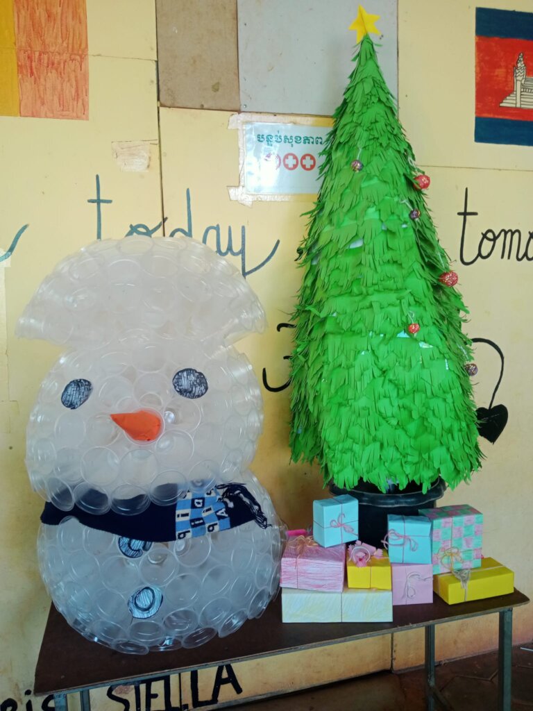 It is not always but it is sometimes, our school celebrates Christmas and the New Year. However, it makes our pupils very enjoyed and proud of it. We learnt that Cambodian children are opened-minded to get new culture which makes them funed and happy. So, on the Christmas and the New Year Day together with their schoolmates and teachers celebrated them. It is another activity that makes pupils motivated.