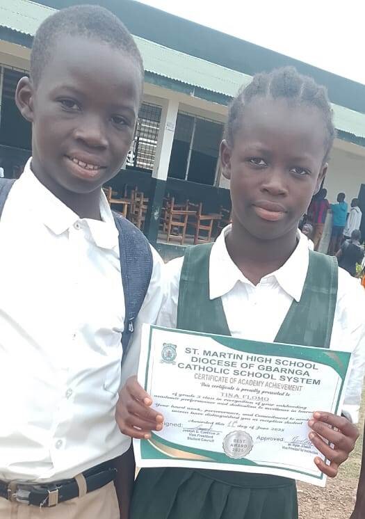 Tina has been at the top of her class for several years running, and her dedication to her education is truly inspiring. We're proud to report that her outstanding achievements have earned her a special recognition from the Ministry of Education in Liberia.