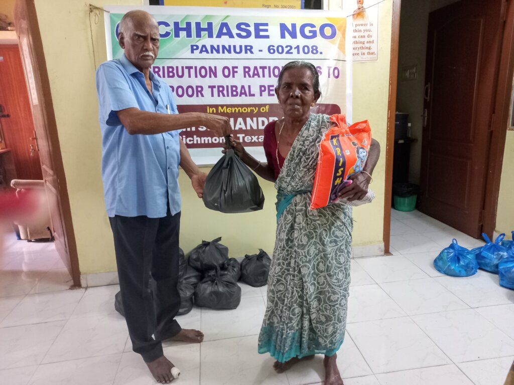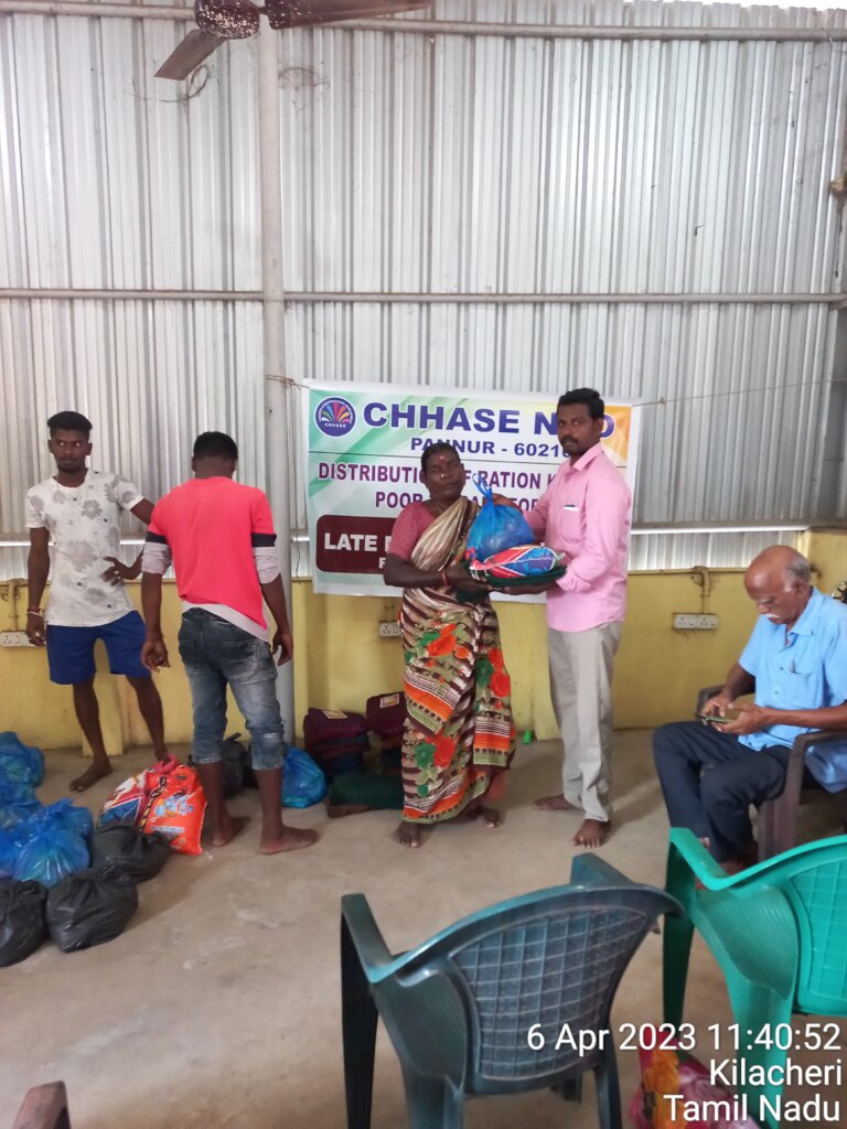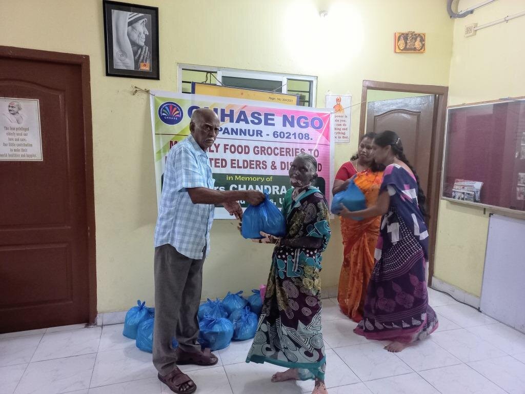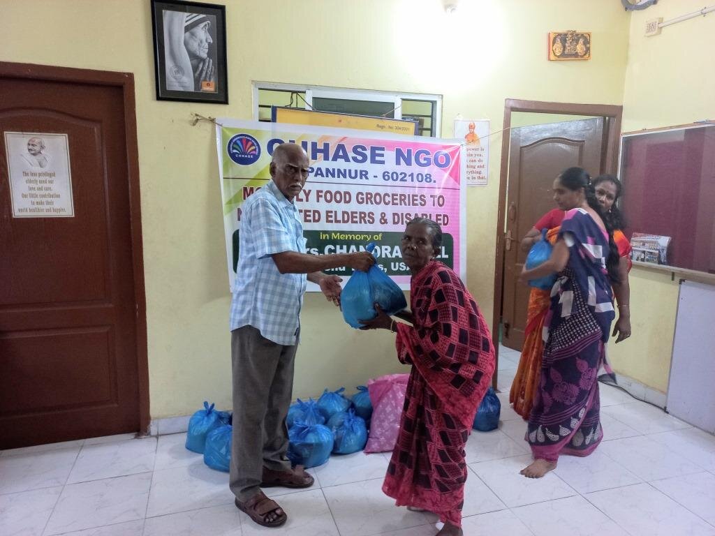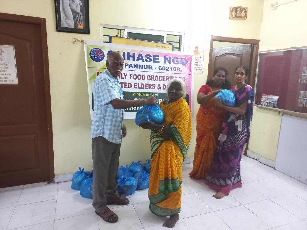 CHHASE has identified 78 poor neglected poor women in our project area where we are unable to open a elderly care centre. We came to know that they are able to cook themselves. Hence we started providing monthly food groceries at their door steps. We have included 9 disabled persons, 7 single male above 75 years and 62 women aging 65 and above. With this sympathetic act, they are now well and passing their last moments without starvation.