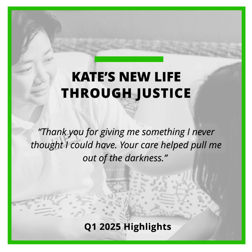 In the last three months, we helped 6 children who were harmed through online exploitation and trafficking. We also provided legal and after care services to 147 survivors, helping them take steps toward healing and justice. Some even received USD 725 in compensation.