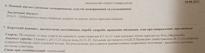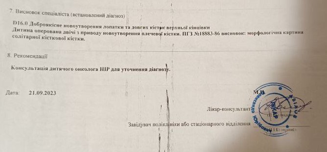 "Sasha's mother called, crying from happiness. They are now in Kyiv, just got out of the children's oncology center - Everything is fine! The oncologist studied everything from the very beginning, took another X-ray - everything is healing! Olexandra will only need to take some medication to facilitate the growth of her bone. What was thought to be a tumor is growing in the bone itself! And if it goes like this, then before the formation of a complete skeleton - by the age of 18 it should grow completely and then there will be no need for an implant! Annual check-ups, X-rays, and MRIs will continue to monitor her progress to ensure her well-being."