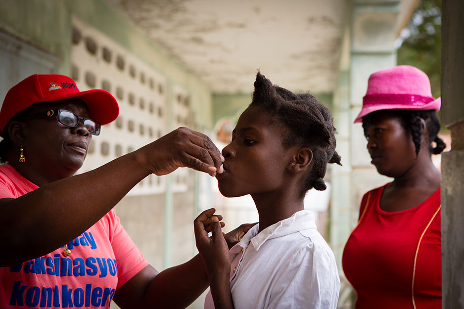 Above: A young woman receives a dose of the cholera vaccine at the public school in Fond Michel.