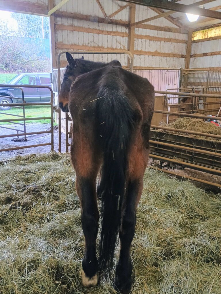 In about six months, once Clyde has gained weight and received his remaining veterinary care, we will begin searching for a foster and/or adoptive home for this lovable guy. If you’re interested in giving Clyde a soft place to land, please email courtney@soundequineoptions.org.