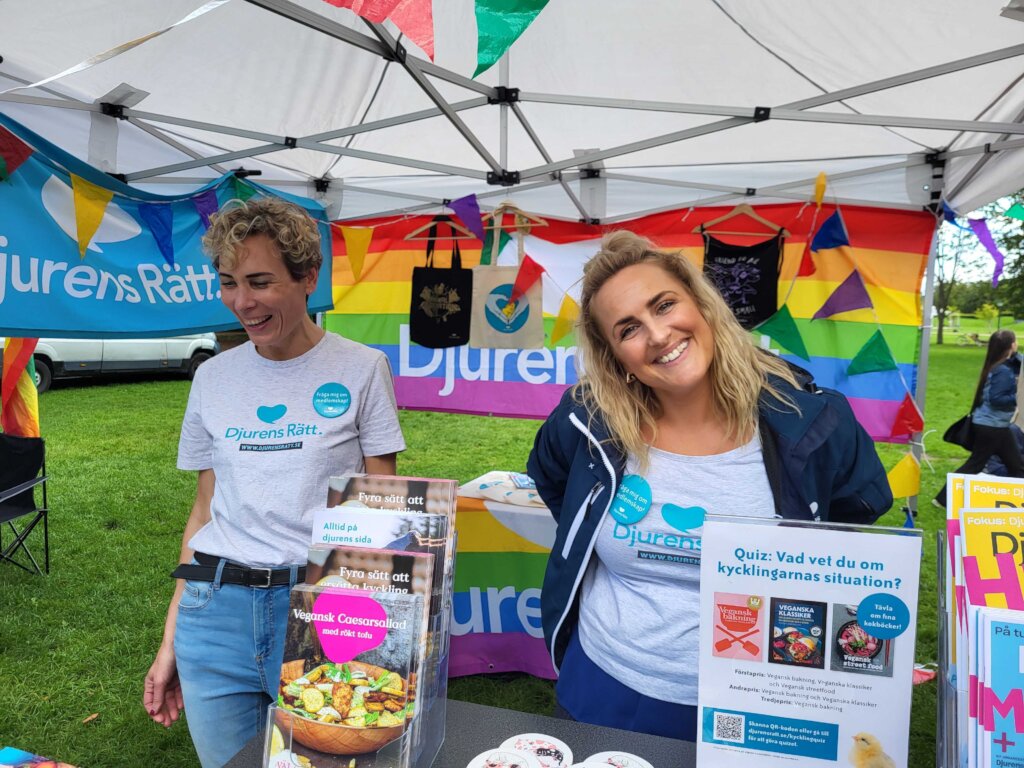 During the tour we visit festivals and events all over Sweden to raise awareness about the exploitation and suffering of animals in the fur industry, factory farms and animal testing. Our goal is to inspire more people to make animal friendly choices in their everyday life.