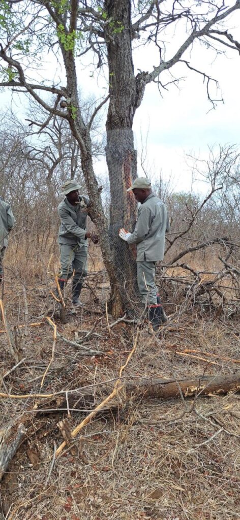 We introduced Geojute material to help stabilise a steep slope behind one of the dams we rebuilt. We’re pleased to report that the application has been very successful—plants and grasses have already sprouted between the material, as intended. This not only supports further growth but also adds stability to the slope, preventing erosion from rainfall. This, in turn, will extend the life of the dam, which is crucial for the animals on the reserve.