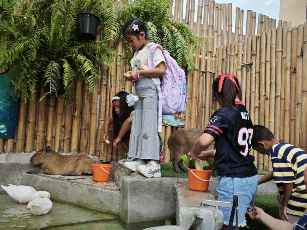 A Season of Discovery during the school holidays: Thanks to a visiting team from the USA, our mothers and children spent a wonderful day at the newly opened Capybara Café. It was heartwarming to see the children interacting with the animals—not just the capybaras, but meerkats and turtles, too.