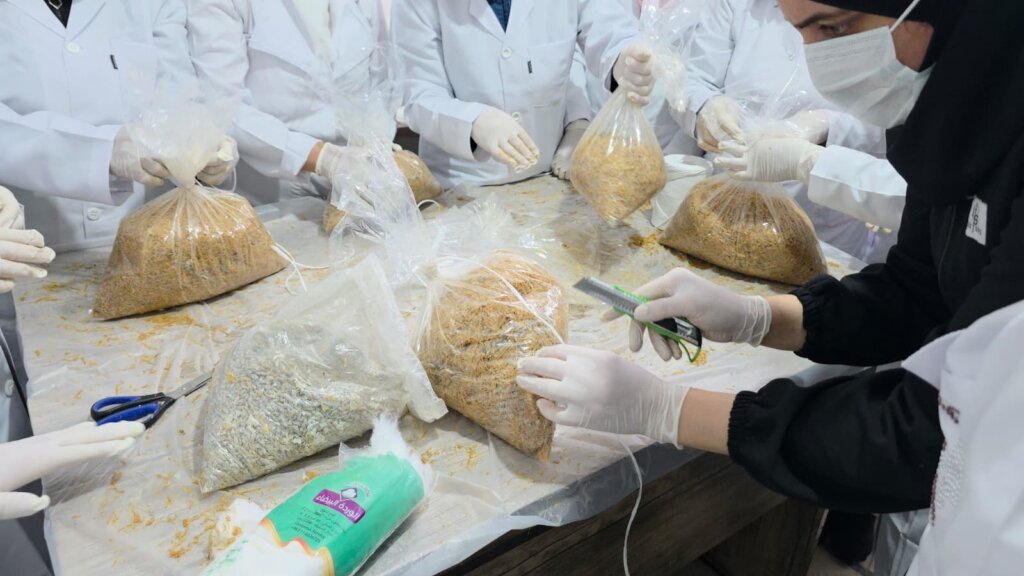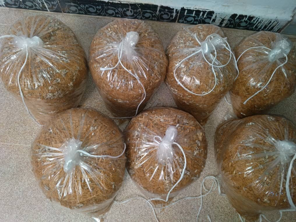 At the end of the training, each participant received a complete startup kit, including mushroom spores, substrate, sprayers, bags, sanitizers, and containers for storage — everything they need to start growing at home.