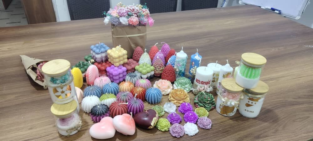 By the end of the program, each woman received a complete startup kit including wax varieties, molds, sculpting tools, decorative materials, essential oils, and packaging supplies — everything needed to launch her home-based candle-making business.