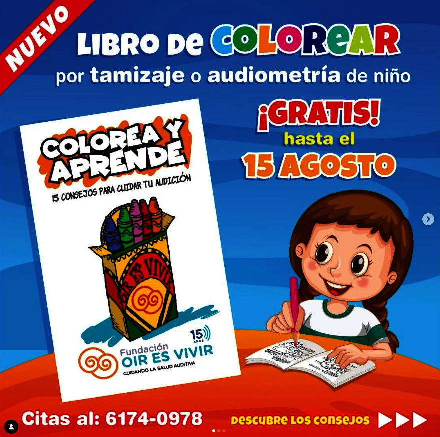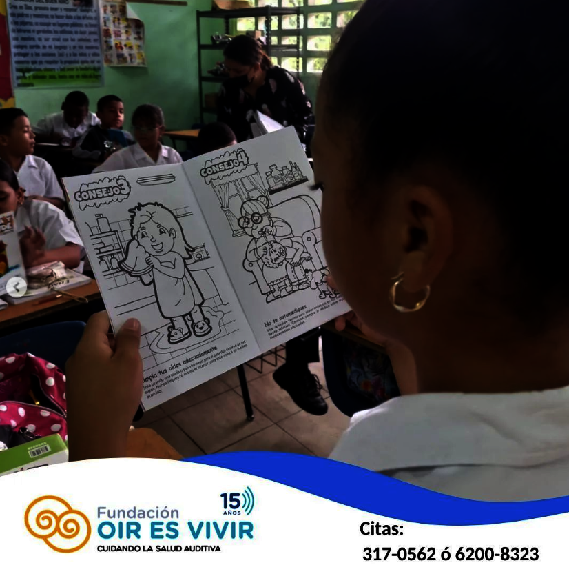 So far, we have been distributed these books in different activities (including the Panama Book Fair) and in 10 public schools in the capital and the interior of the country. These have been given to second- and third-grade children; those who have been told about the importance of hearing health and invited to paint the booklet and read it with their teachers and parents. An important component of this project is that every book given away includes a FREE HEARING TEST when presented completely colored at our clinic. We also gave away free booklets at our clinic with each hearing screening test performed on kids during our first month of launching this project.