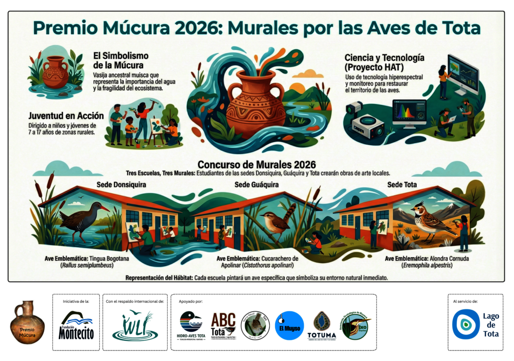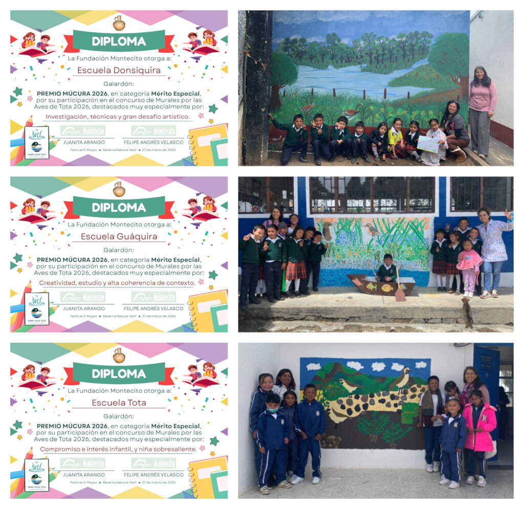This year's contest was related to painting school murals, related to a relevant local bird species and its habitat, in which three schools took part, all of them awarded with the Múcura Award for certain virtues in their drawings and efforts. Behind this initiative was a continuation of a science-knowledge transmision, from the Hidro-Aves Tota project